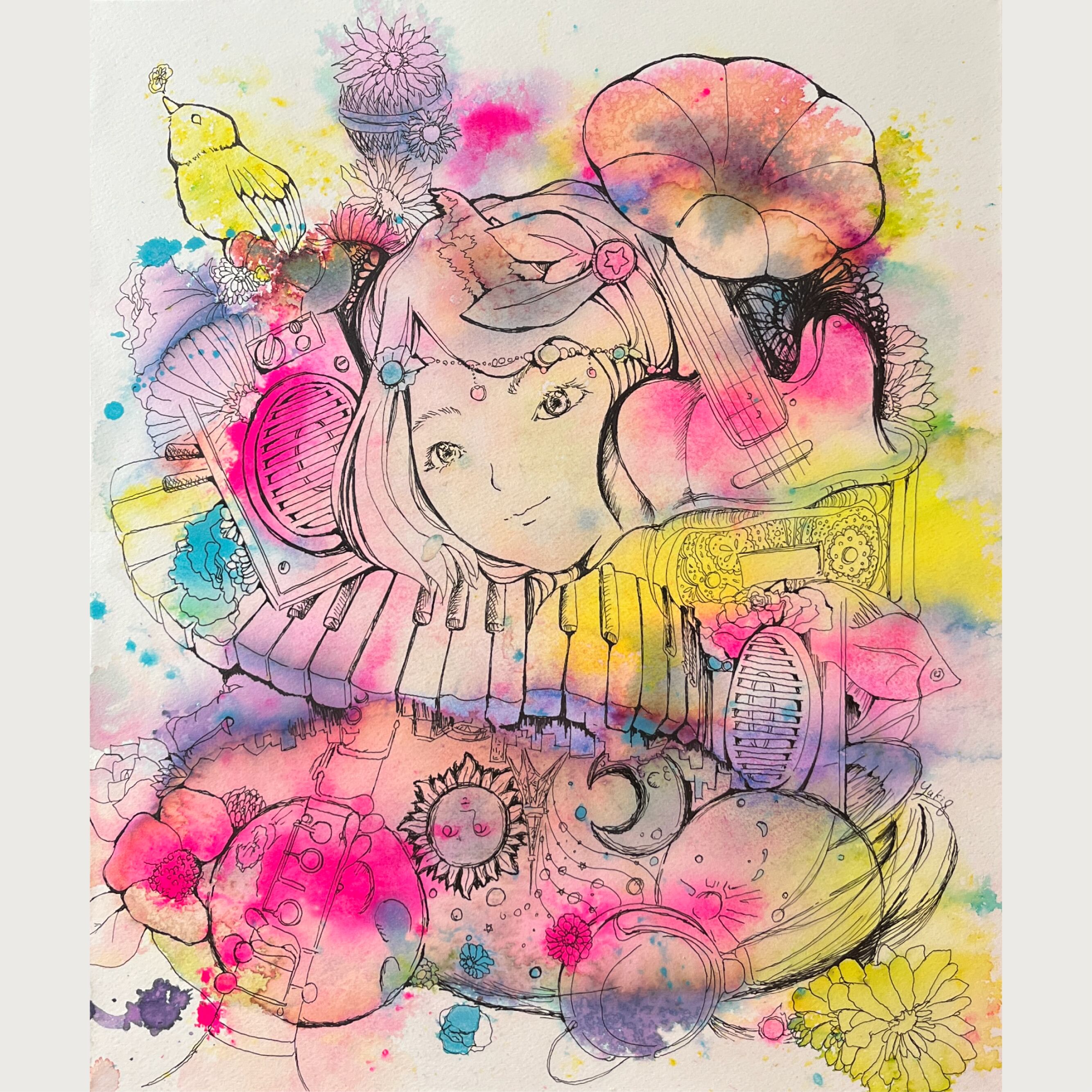 2025年8月/ワトソン紙、水彩ガッシュ、Hosia Ink、ミリペン、油性マーカー