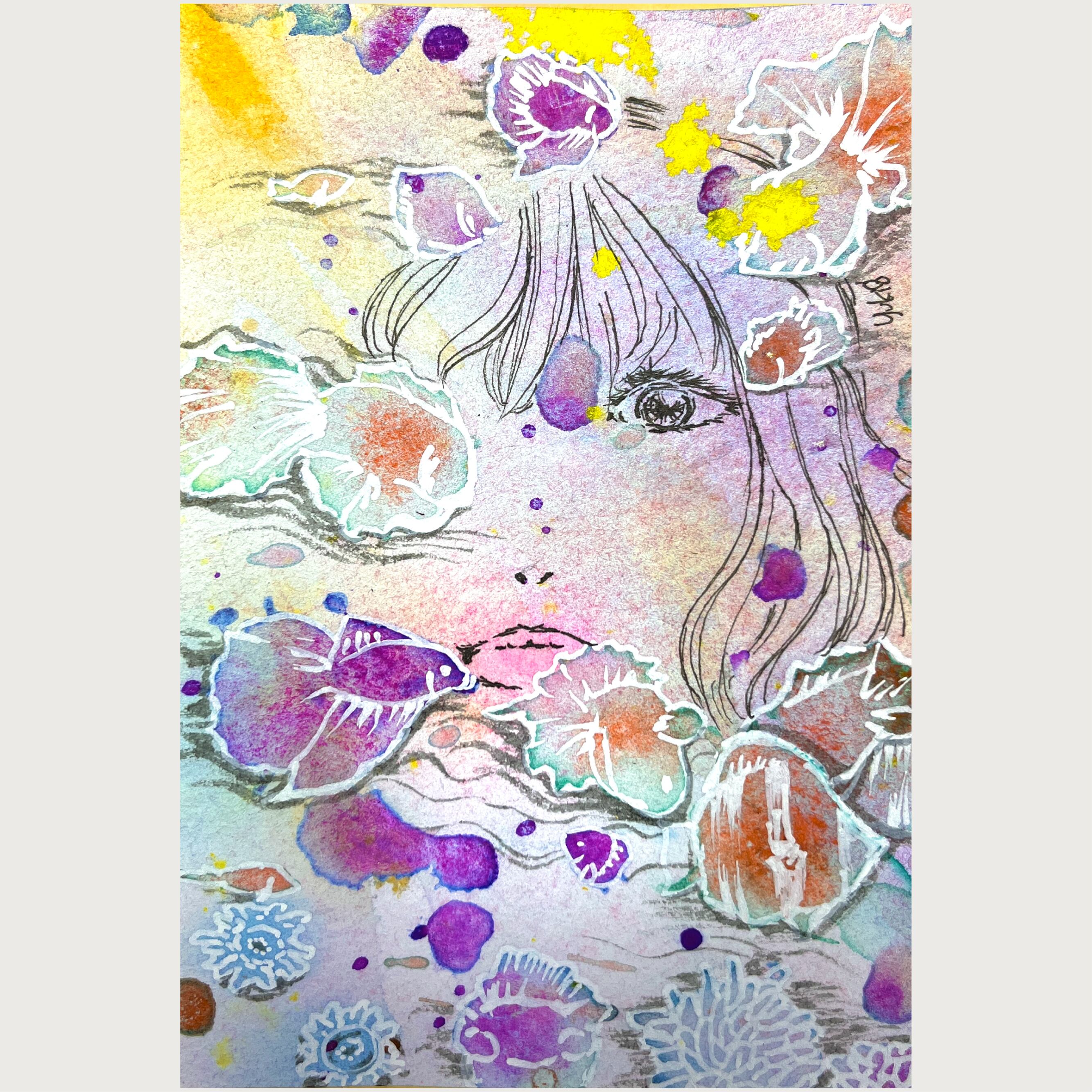 2025年11月/ワトソン紙、水彩ガッシュ、呉竹顔彩耽美、ミリペン、筆ペン、呉竹オペークライナー