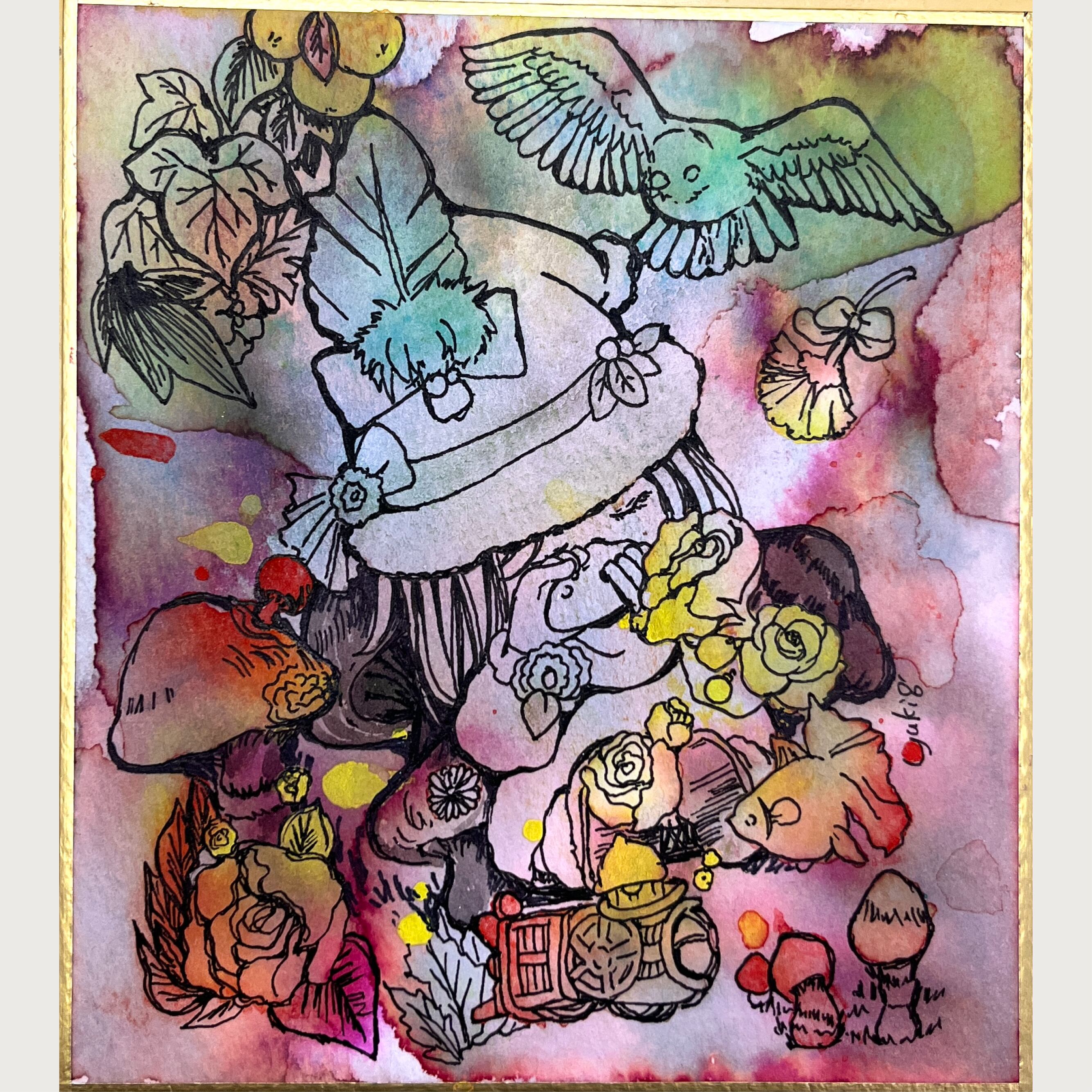 2025年7月/ワトソン紙、水彩ガッシュ、Hosia ink、ピクシーパウダー、ミリペン、油性マーカー