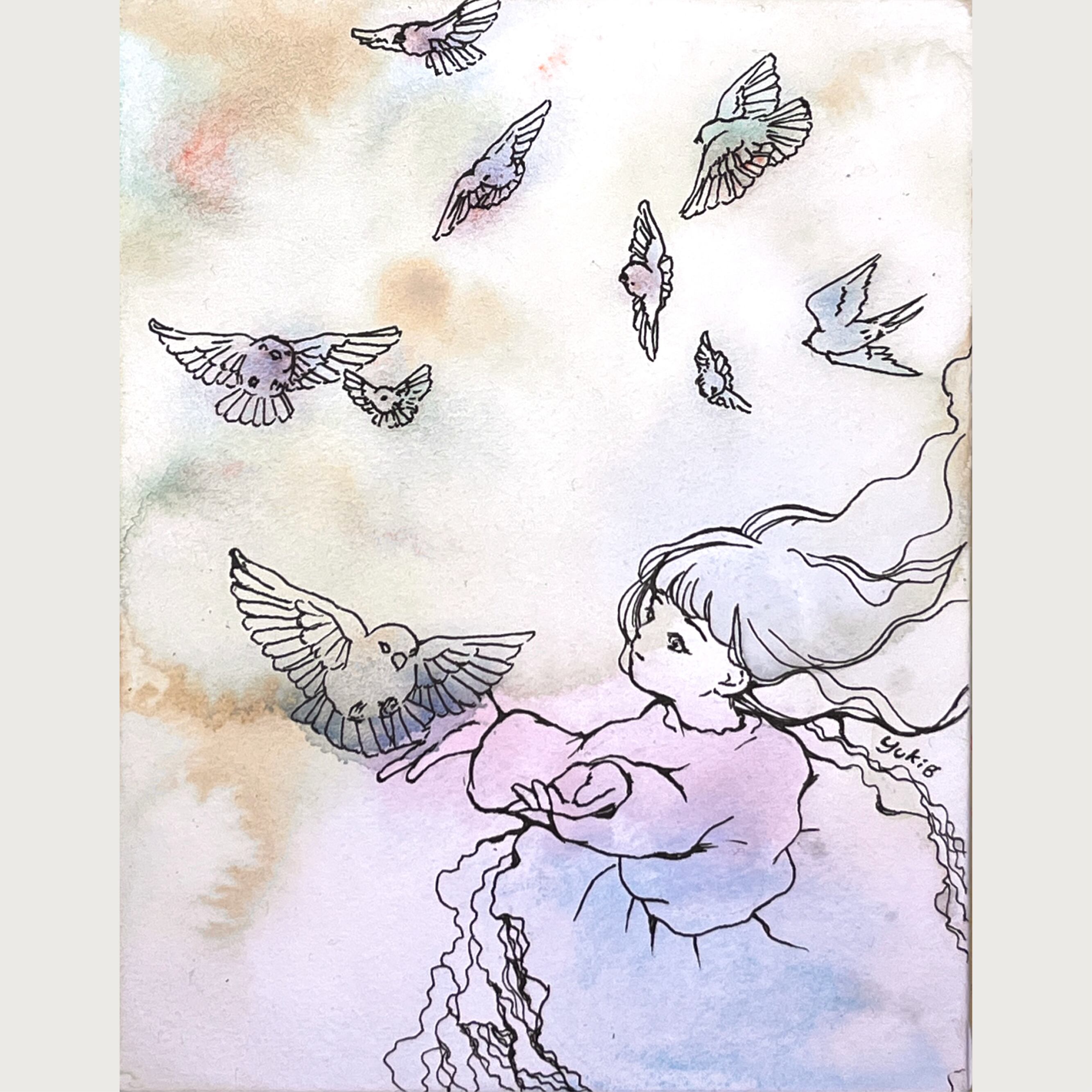2026年1月/ワトソン紙、絵墨雪、呉竹顔彩耽美、水彩ガッシュ、ミリペン