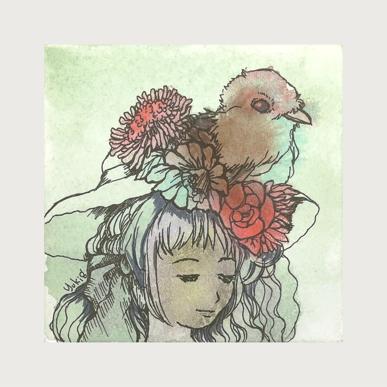 2026年1月/ワトソン紙、水彩ガッシュ、絵墨雪、ミリペン