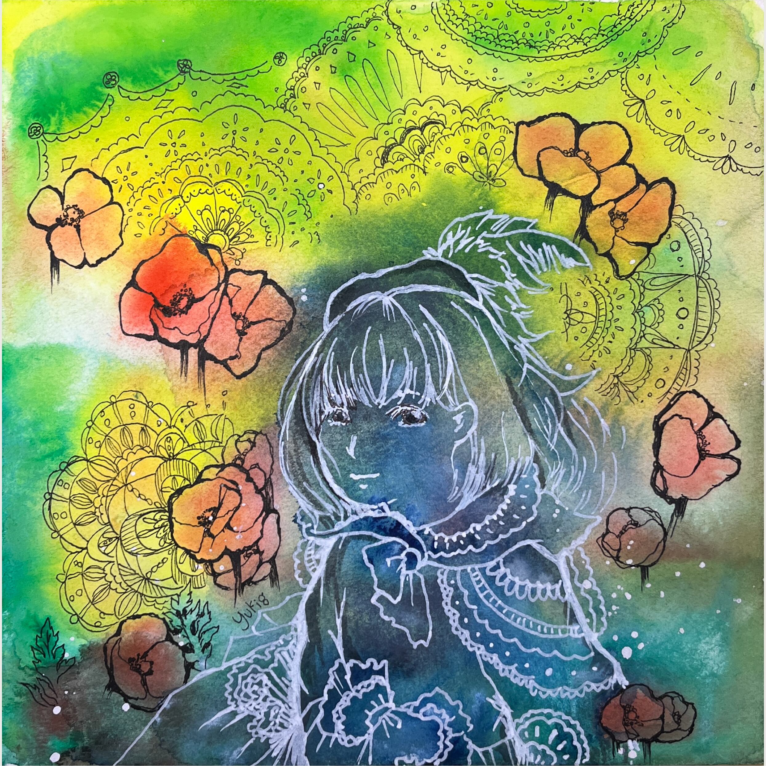2026年1月/ワトソン紙、水彩ガッシュ、呉竹顔彩耽美、ミリペン、油性マーカー、呉竹オペークライナー